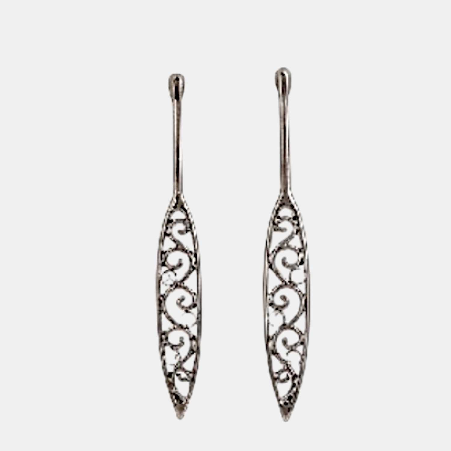 Slanted Pounamu Earrings with 2 Koru Cut-out - 55MM