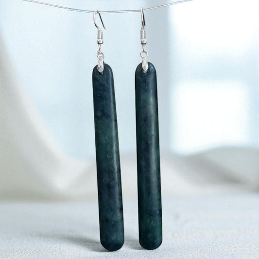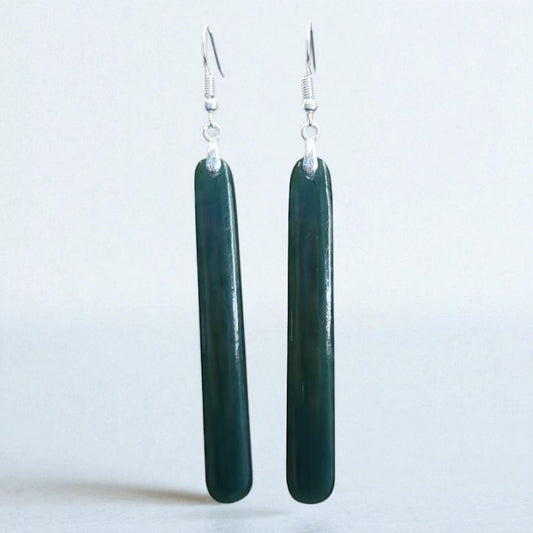 Pounamu Slanted Base Drop Earrings with Notches - 70mm
